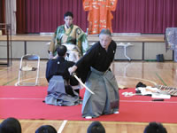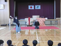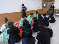![]() 町内にお住まいの能楽の先生が教えに来てくださいました。能を間近に見ることができ、子どもたちも保護者の皆様も感激していました。面を付けたり、動き方をお教えていただくこともでき、伝統芸能にふれるよい時間になりました。 |