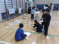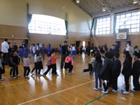 2月5日に1年生が支援ボランティア12名の協力を得て、伝承遊び体験を行いました。竹馬・こま・竹とんぼ・おはじき・折り紙・あやとり・けん玉などをおじいさんやおばさんに教えてもらいながら体験しました。 |