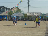 2時間目に児童会種目の練習を行いました。今年は、二人三脚リレーとフィールドオセロを行います。二人三脚リレーはたてわり班でペアになり、折り返しリレーに挑戦します。フィールドオセロは色別対抗でフィールド内にあるパネルを攻撃側が赤から緑に変え、守備側が緑から赤に戻すゲームです。 |