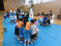 ![]() いすとりゲーム はんかちおとし 今年度の新しいたてわり班が編制されて、初めての全校たてわり遊び。8つの班に分かれて、それぞれの学年の児童が、下の学年のことを考えながら集団遊びを行いました。雨天のため、室内でいすとりゲーム、ハンカチおとし、リーダーあてや体育館でドッジボールなどをそれぞれの班で行いました。 |