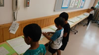 ![]() 雨の日が多いため、休み時間に運営委員会主催のクイズ大会が開催されました。多くの児童が参加し、楽しい時間をすごしていました。 |