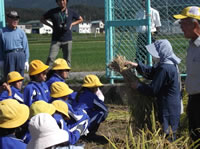 ![]() JA東びわこの方や地域の方が来てくださり、お米のことについて教えていただきました。1株で1600粒も実ること、大きなバケツでも育てることができること、お米が実るまで88回も手間をかけていることなど、初めて知ることばかりで、5年生の子どもたちも驚いていました。 |