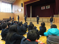 補導員さんによる劇 駐在所の方のお話 5年生と6年生が非行防止教室を行いました。東近江少年センターの補導員の方による劇や東近江警察署の方の話を通して、万引きは犯罪であり、絶対にだめなことだということを改めて確認しました。 |