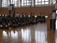 ![]() 台風11号が接近しているため、一日早めて終業式を行いました。校長先生からのお話や一学期に頑張ったことの児童発表の他、先日の自転車大会の技の披露を行い、一学期に頑張ったことをたたえあいました。 |