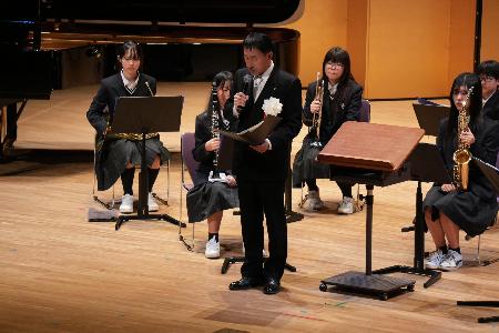秦荘中学校吹奏楽部の皆さまに合奏を披露していただきました。