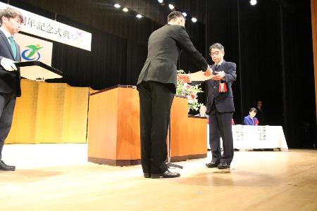 産業功労部門を代表して感謝状を受け取る愛荘町商工会 様