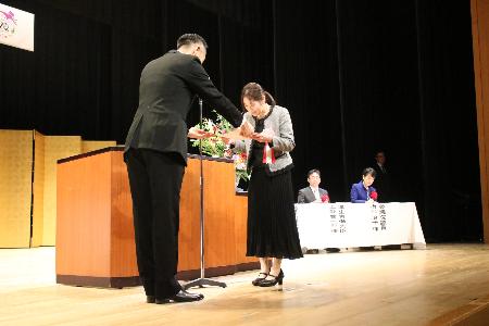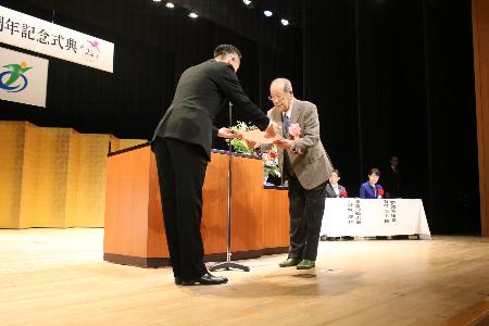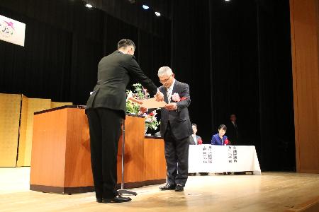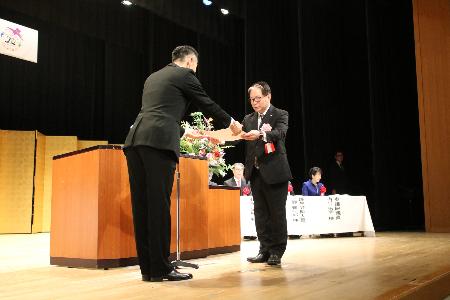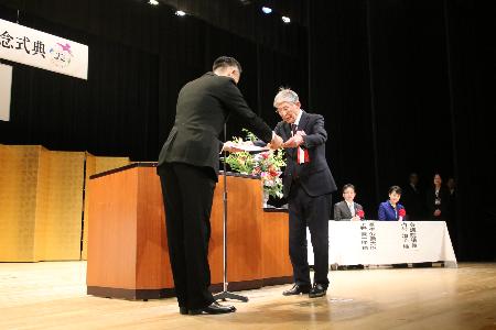 自治功労部門を代表して感謝状を受け取る東円堂区長 様