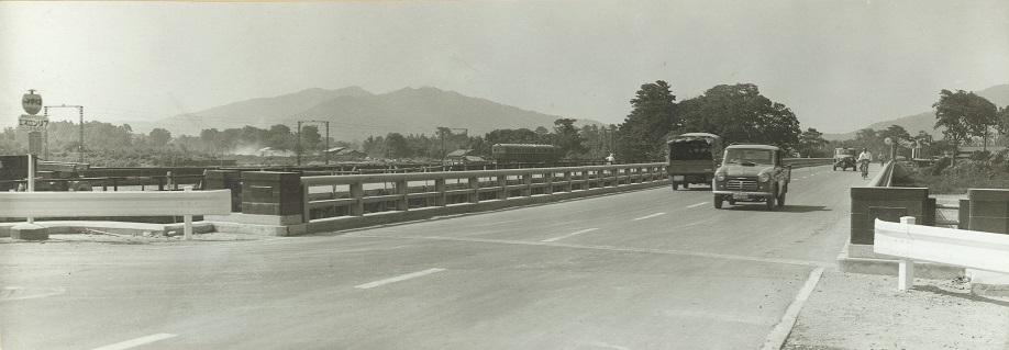 昭和36年に架け替えられた御幸橋。隣の鉄橋を近江鉄道の車両が走っている。